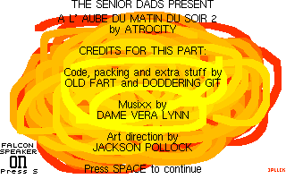Howdee-doody my friends- if you've ever wondered who is responsible for all the visual splendour of this web site and the Senior Dads demos, then look no further. Welcome to my own private gallery! (Cue spooky "Gallery" music from "Vision on".) Feel free to look around, but please remember to take all you litter home with you!
